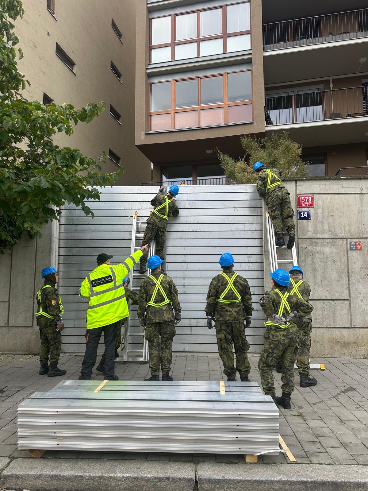 Na stavbě se podíleli pracovníci Správy služeb hlavního města Prahy, příslušníci aktivních záloh Armády ČR a Hasičského záchranného sboru hl. m. Prahy společně s dobrovolnými hasiči z pražských městských částí Zličín, Klánovice, Újezd, Benice, Čakovice, Řeporyje, Satalice, Letňany a Bohnice. Doplnily je i dvě jednotky dobrovolných hasičů ze Středočeského kraje – z Pleteného Újezdu a Buštěhradu a zástupci PVK.