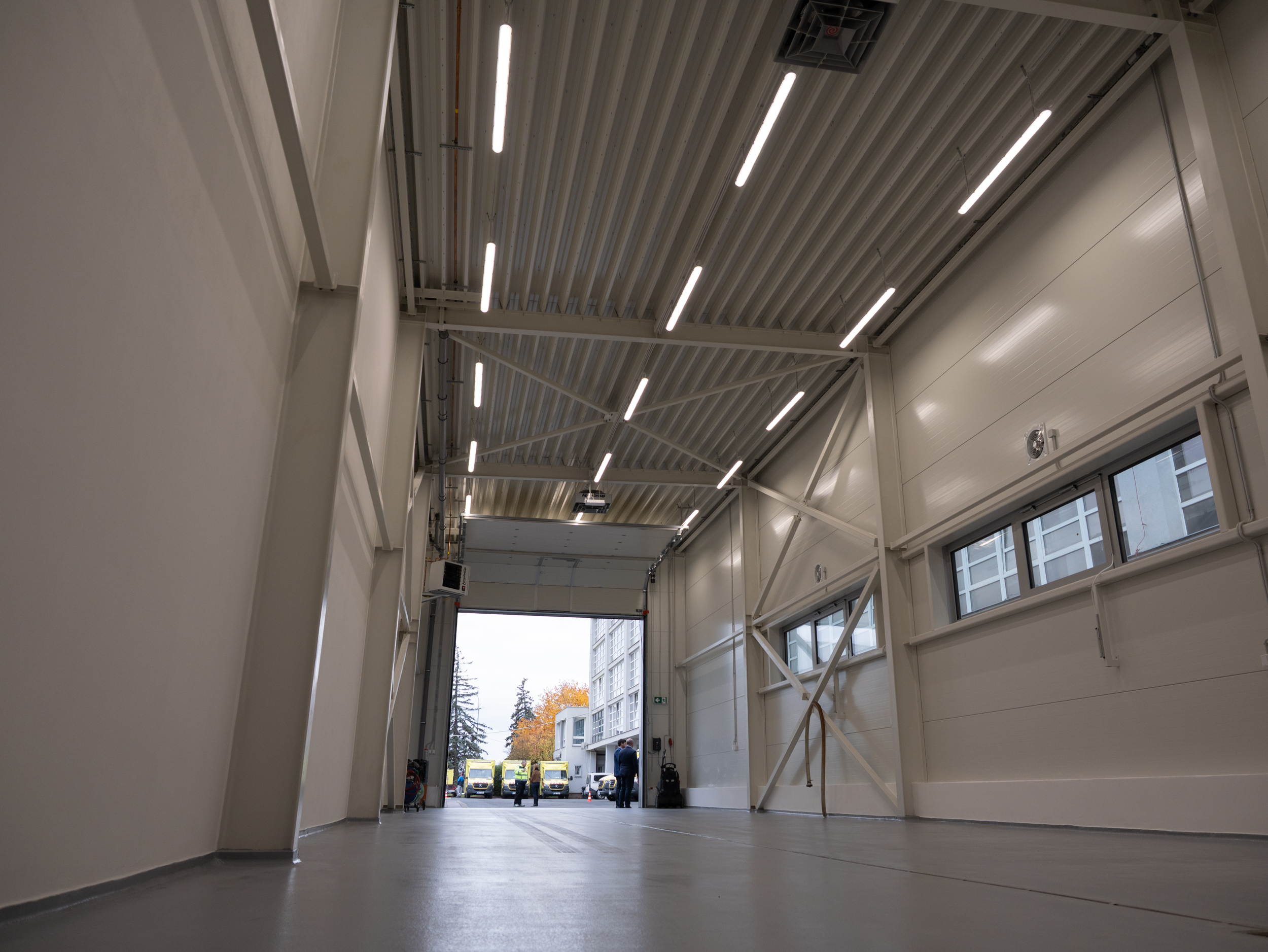 Nová garáž je navržena tak, aby plně odpovídala potřebám tohoto speciálního vozidla. Využívá unikátní systém destratifikace vzduchu, který zajišťuje cirkulaci tepla z prostoru stropu zpět do celé haly a díky tomu dochází k významným úsporám energie. Pro rychlé vyhřátí prostoru slouží dvě výkonné jednotky typu „sahara“, které dokáží v krátkém čase zajistit optimální teplotu.